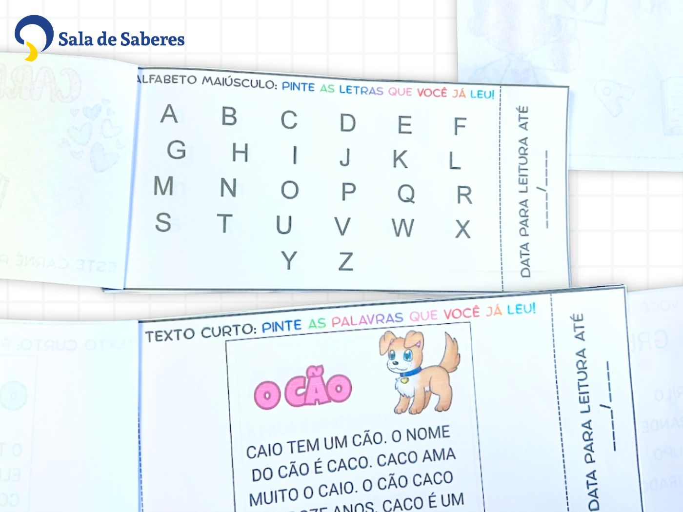 Se a criança ainda está no início da alfabetização, entregue apenas as fichas de vogais e do alfabeto. Receber um carnê cheio de páginas com palavras e textos pode parecer algo distante demais — e isso pode gerar insegurança ou até desânimo. O ideal é que a criança veja o carnê como algo conquistável, não como um desafio impossível. 💛