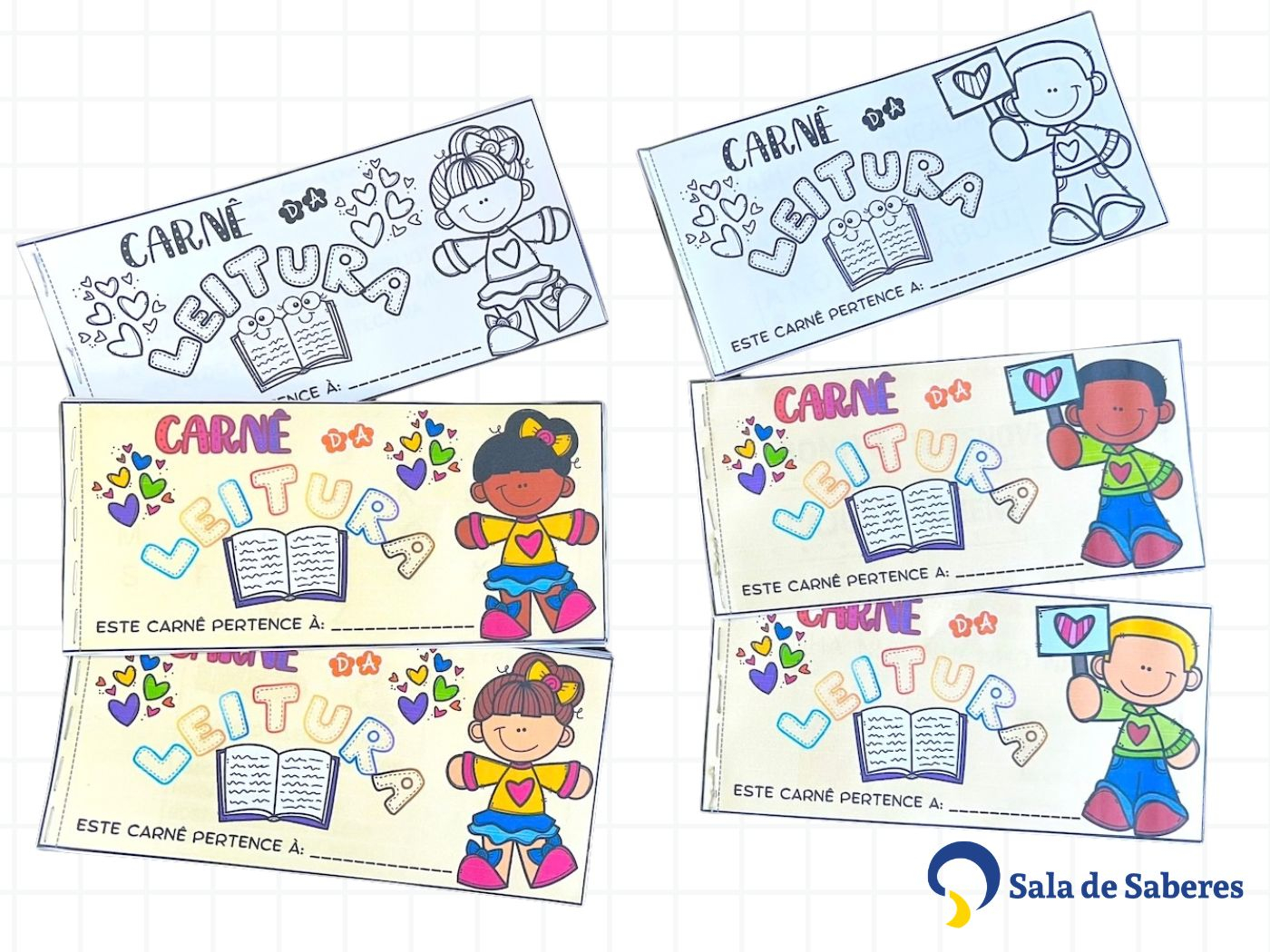 O material traz capas ilustradas em versão colorida e em preto e branco, com personagens infantis diversos — meninas e meninos de diferentes etnias — tornando o recurso inclusivo e representativo para todas as crianças. ✏️ Cada capa possui um espaço para identificação do aluno, permitindo personalização imediata.