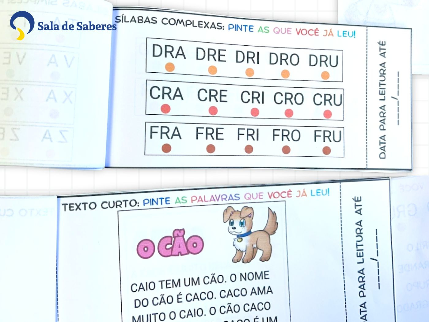 Crianças que já reconhecem letras e estão avançando para a leitura silábica se beneficiam muito das fichas de sílabas simples e complexas. Monte o carnê a partir desse conteúdo e vá acrescentando novas fichas conforme o avanço acontece. Cada nova página entregue vira uma celebração do progresso! 🎉