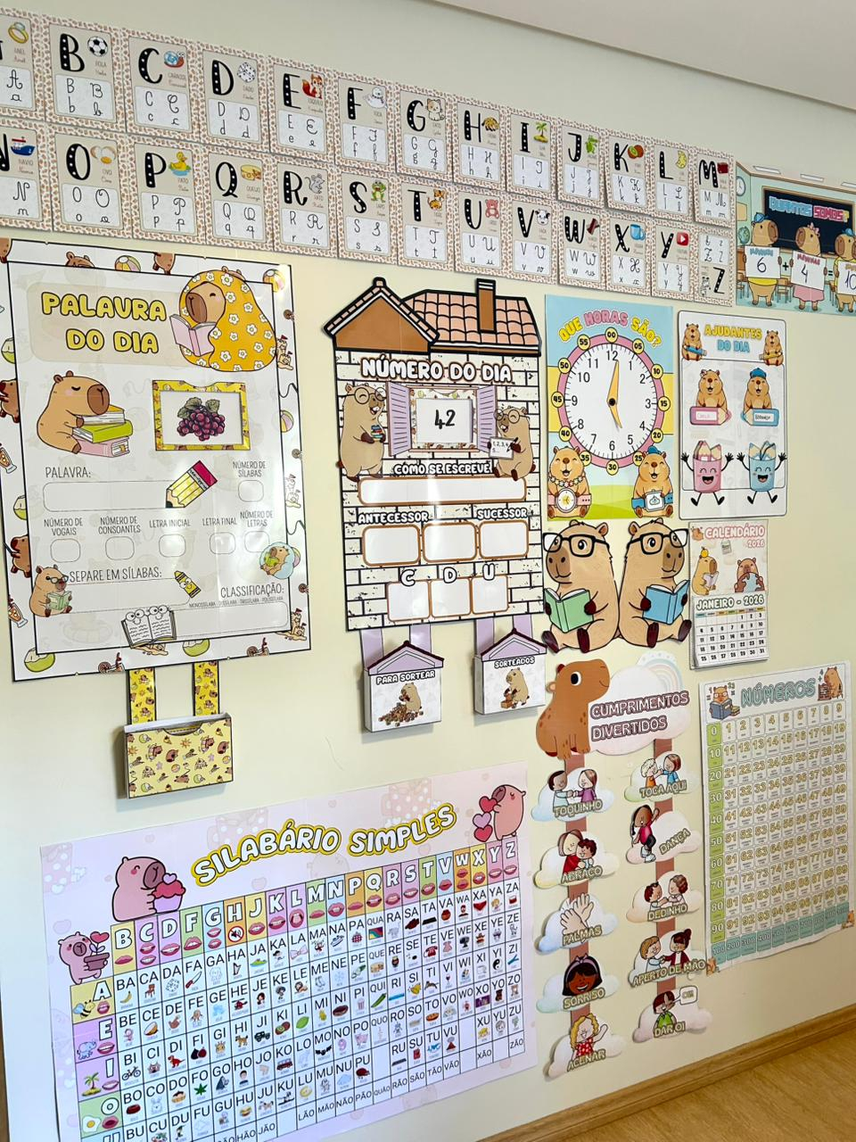 Prepare-se para receber seus alunos em 2026 com um ambiente acolhedor e pedagogicamente rico! Este conjunto completo de materiais pedagógicos traz a simpatia e o charme das capivaras brasileiras para criar um espaço de aprendizagem estimulante e organizado. Cada elemento foi cuidadosamente pensado para apoiar o desenvolvimento integral das crianças, desde a educação infantil até o quinto ano do ensino fundamental. Materiais incluídos: