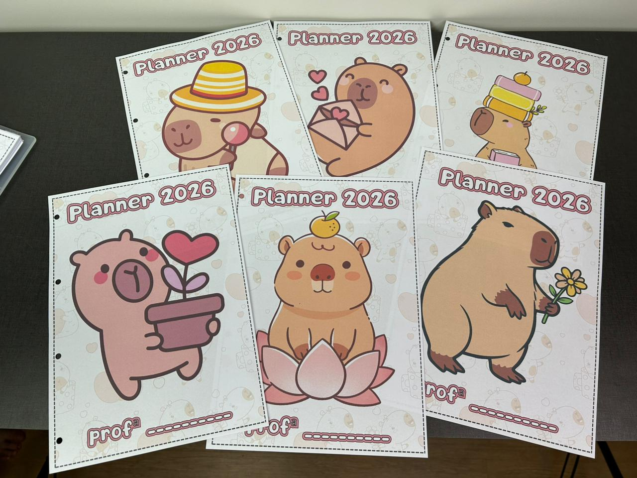 Calendário escolar 2026 com tema capivara, material colorido e organizado em 16 páginas, ideal para apoiar a rotina escolar e familiar, auxiliando no planejamento de atividades e na compreensão do tempo pelas crianças.