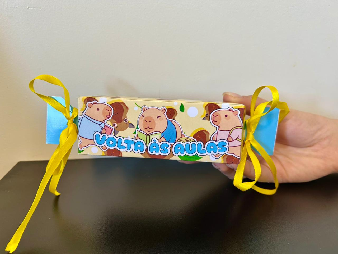 A caixinha em formato de bala para colocar mimos de volta às aulas para as crianças cria um momento de surpresa e alegria que marca positivamente o reencontro com o ambiente escolar após as férias.