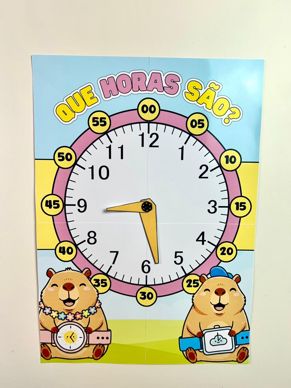 Material educativo sobre medidas de tempo, com tema capivara, desenvolvido para apoiar a aprendizagem nos anos iniciais do Ensino Fundamental.