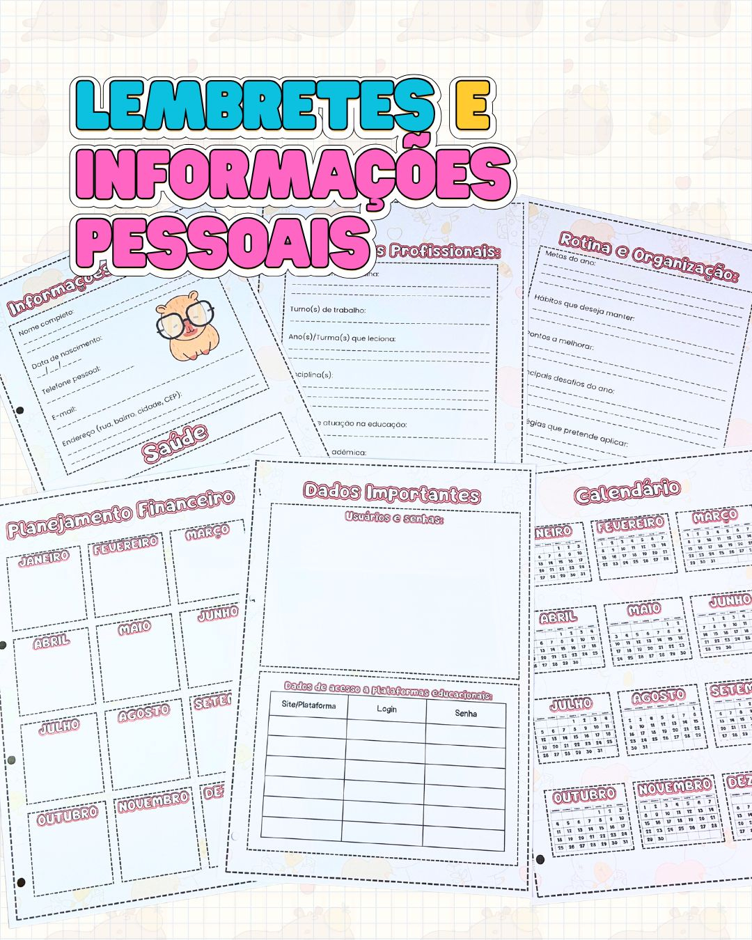 O Planner do Professor 2026 com tema capivara foi desenvolvido para educadores que buscam organização, praticidade e acolhimento no dia a dia escolar, sem abrir mão de um material bonito, funcional e alinhado às demandas reais da sala de aula. Pensado especialmente para o contexto da Educação Básica, ele oferece uma estrutura completa para planejamento pedagógico, acompanhamento dos alunos e gestão da rotina docente ao longo de todo o ano letivo.